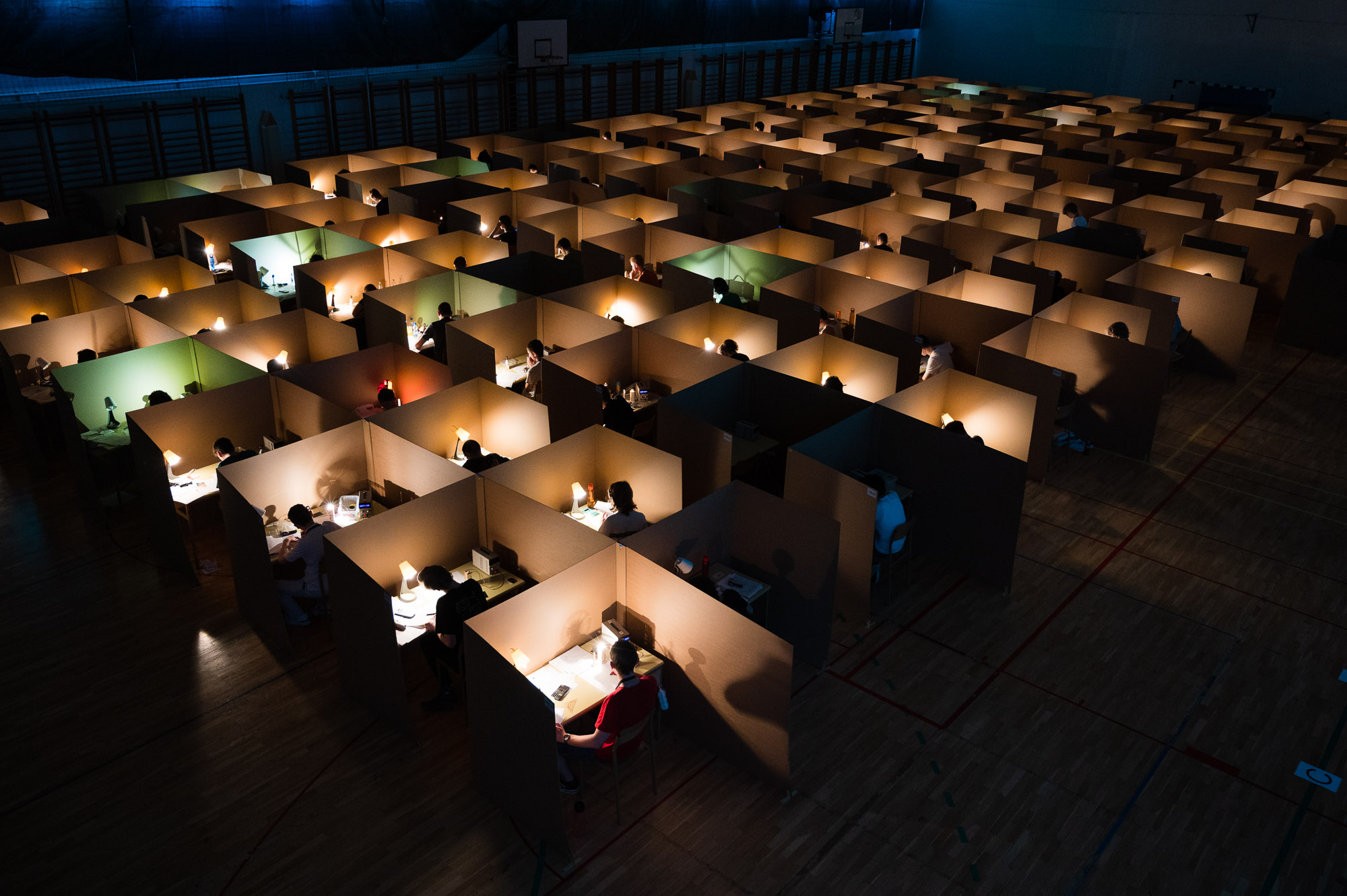 Da smo zmanjšali vpliv svetlobe iz okolice na meritve, smo telovadnico zatemnili, kolikor smo jo lahko; prizorišče je bilo filmsko! Fotografa dogajanja Jan Šuntajs in Vojko Opaškar sta odlično opravila z izzivom.