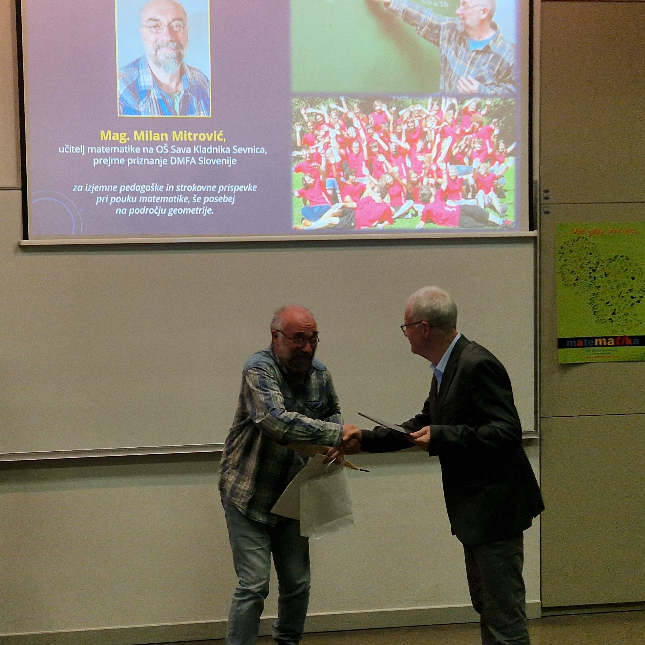 - Mag. Milan Mitrović, učitelj matematike na OŠ Sava Kladnika Sevnica, za izjemne pedagoške in strokovne prispevke pri pouku matematike, še posebej na področju geometrije.