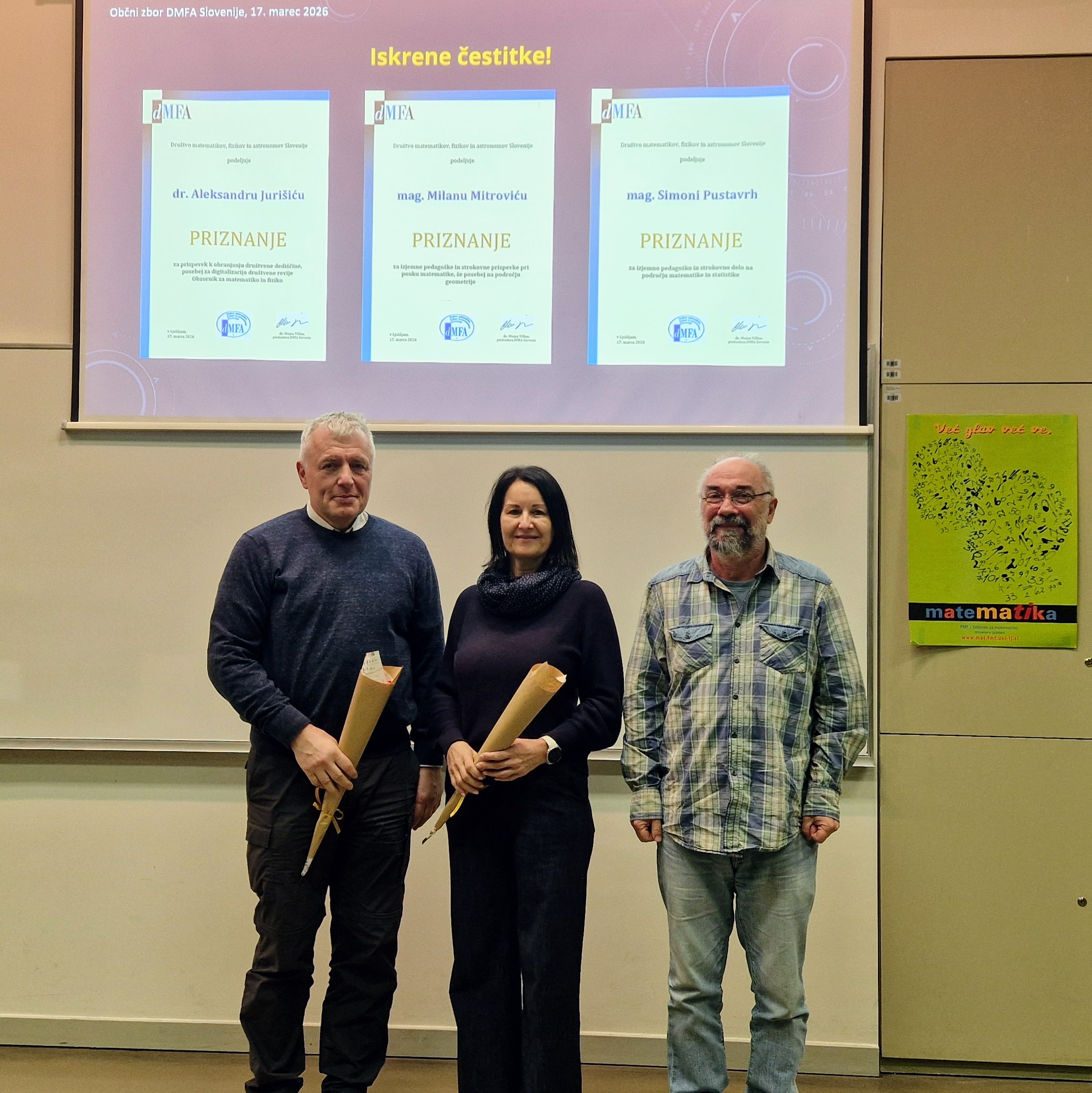 Aleksandar Jurišić, Milan Mitrović in Simona Pustavrh letošnji prejemniki priznanj DMFA Slovenije