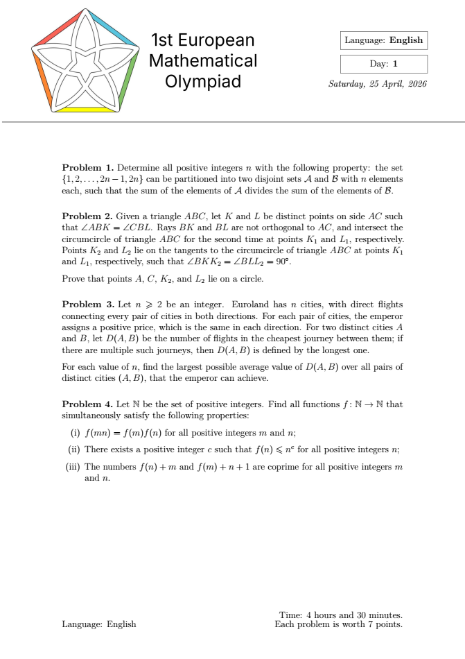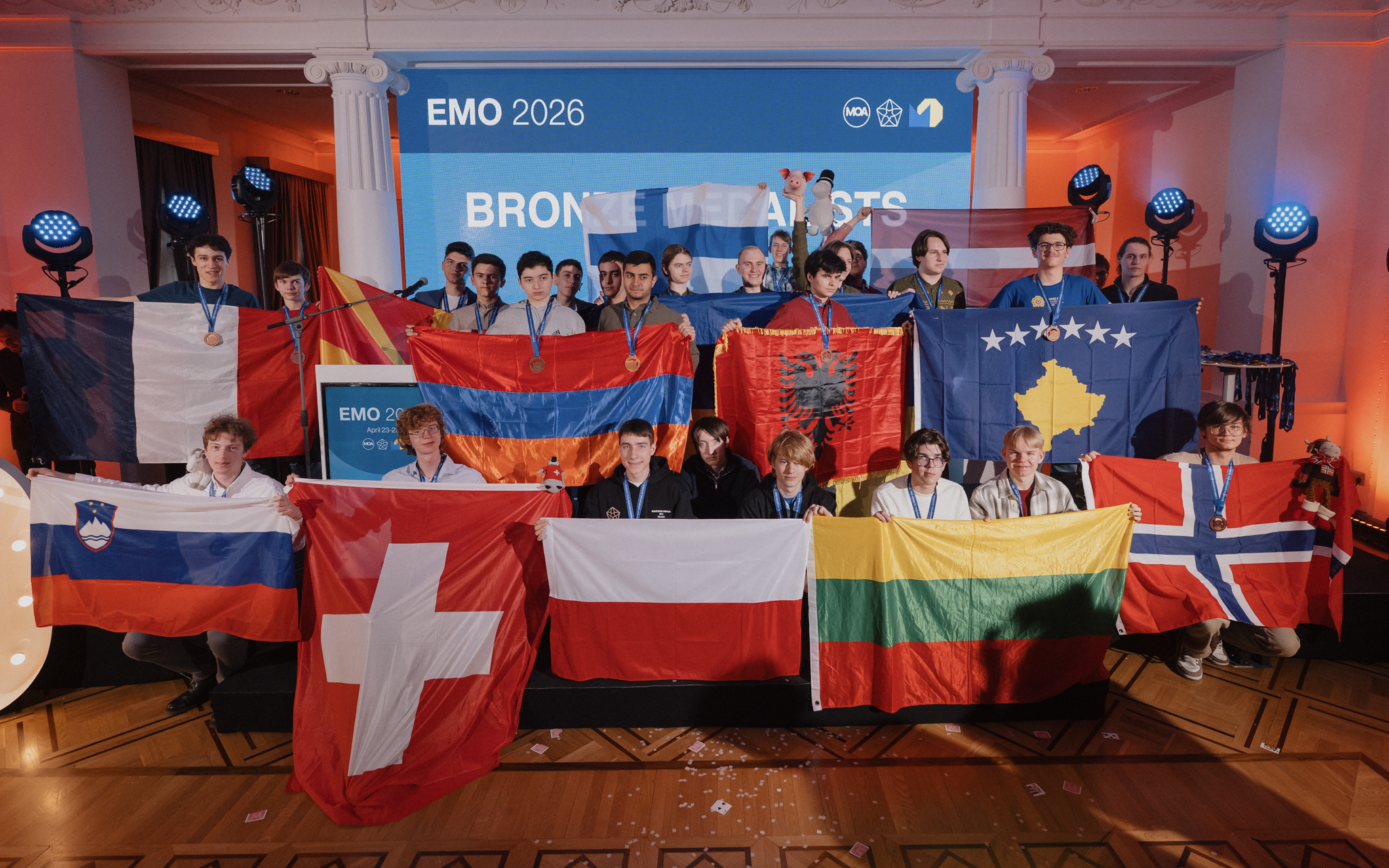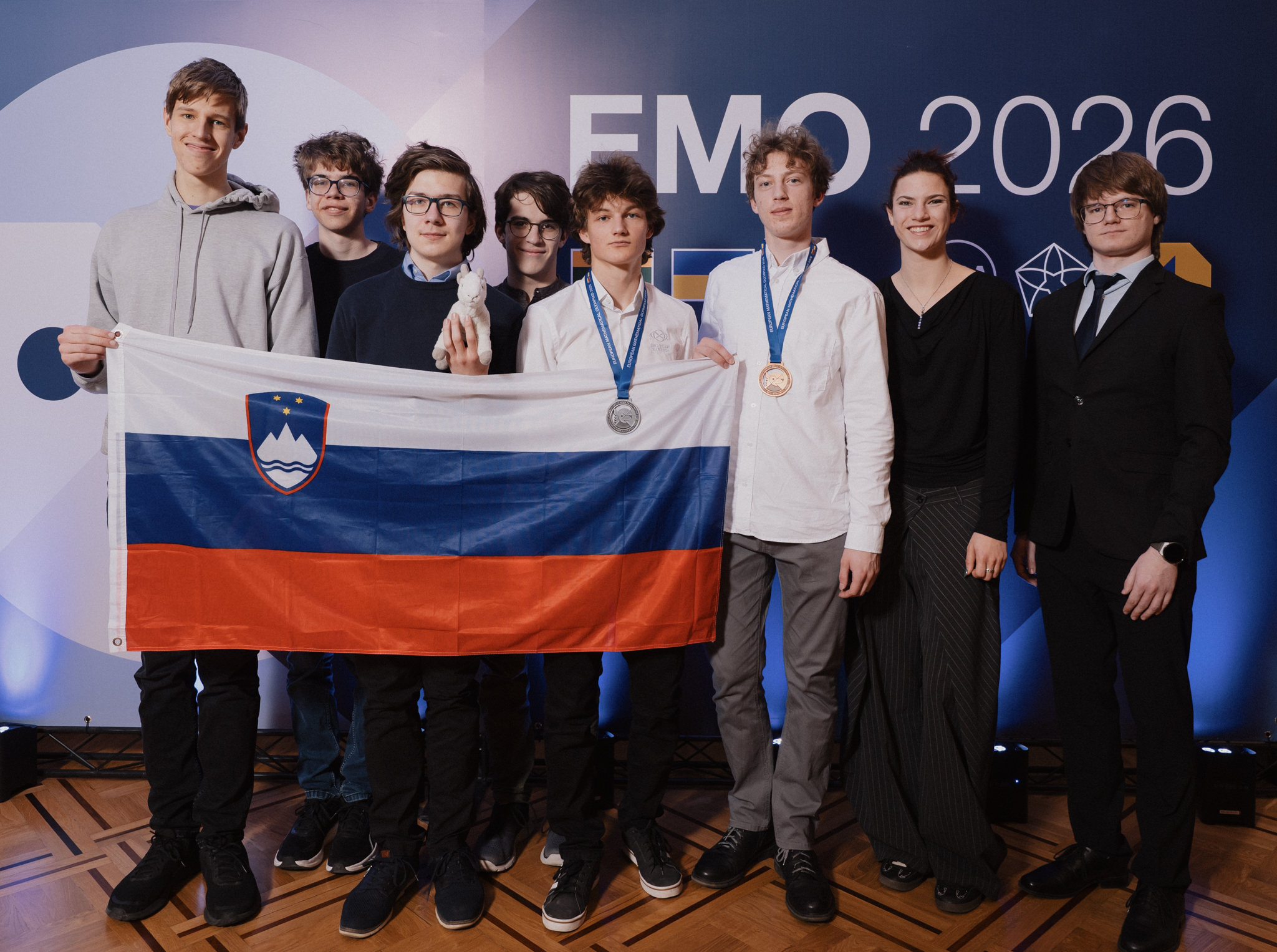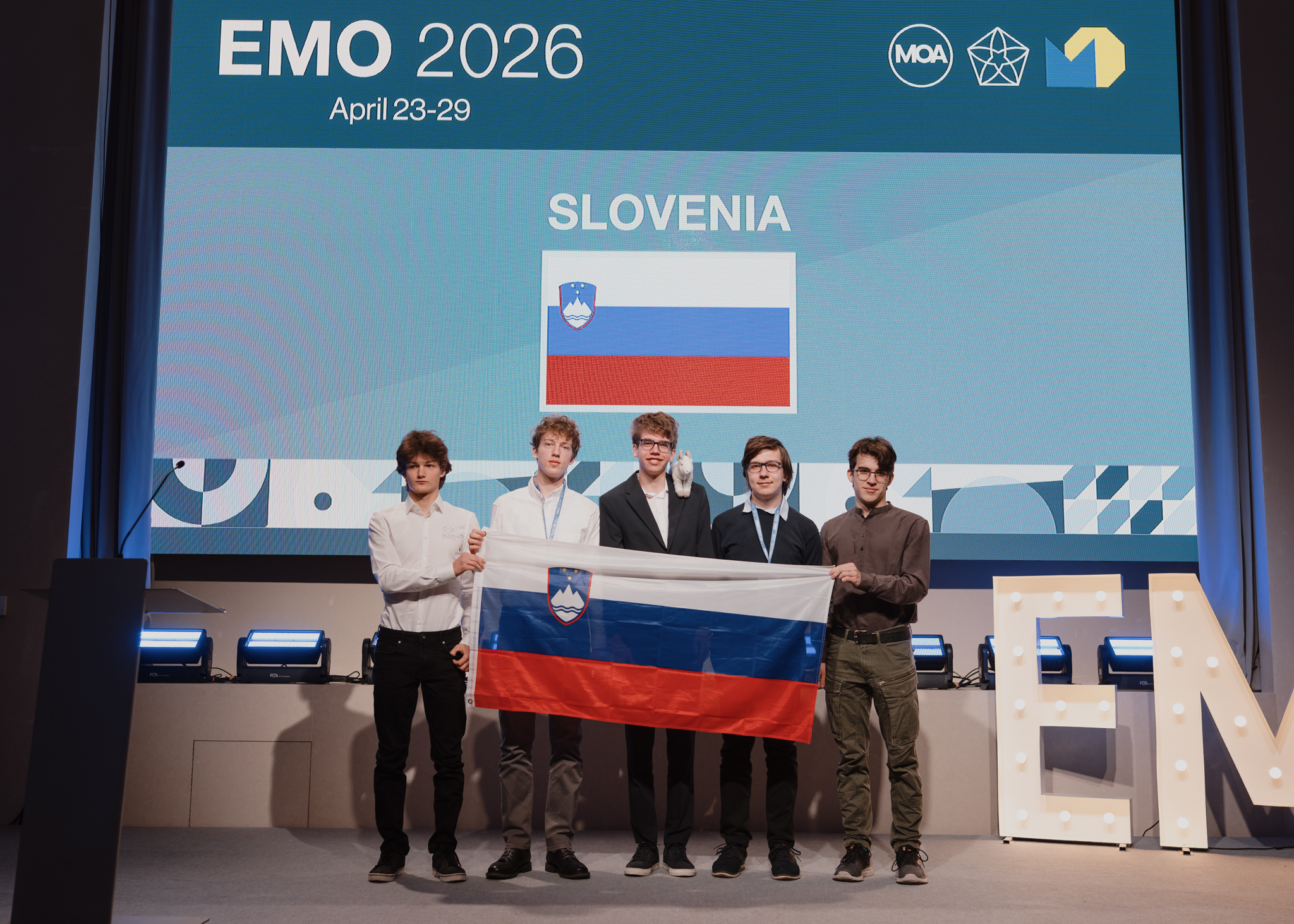 V mestu Vilna v Litvi je od 23. do 29. aprila 2026 potekala 1. Evropska matematična olimpijada, ki sta jo skupaj organizirali Litva in Ukrajina. Tekmovanja se je udeležilo tudi šest slovenskih tekmovalcev, med katerimi se je najbolj izkazal Taras Vuk z Gimnazije Bežigrad, ki je osvojil srebrno medaljo in dosegel odlično 19. mesto med 124 tekmovalci iz 19 evropskih držav. Njegov uspeh so dopolnili še ostali dijaki iste šole: Adam Bürmen z bronasto medaljo ter Andraž Čadež, Martin Alojz Flisar in Primož Markovič, ki so prejeli pohvale s popolnoma enakimi točkovnimi rezultati pri posameznih nalogah. Slovenijo je na olimpijadi zastopala še Tisa Lombar z Gimnazije Vič. Ekipo sta na tekmovanju spremljala Luka Horjak in Žiga Oštir, Lovro Drofenik pa je sodeloval v komisiji za izbor nalog in pri koordiniranju (usklajevanju točkovanja med državami). Iskrene čestitke vsem tekmovalcem in mentorjem za izjemne dosežke ter odlično zastopanje Slovenije! Naj vas uspehi še naprej navdihujejo na poti raziskovanja matematike!